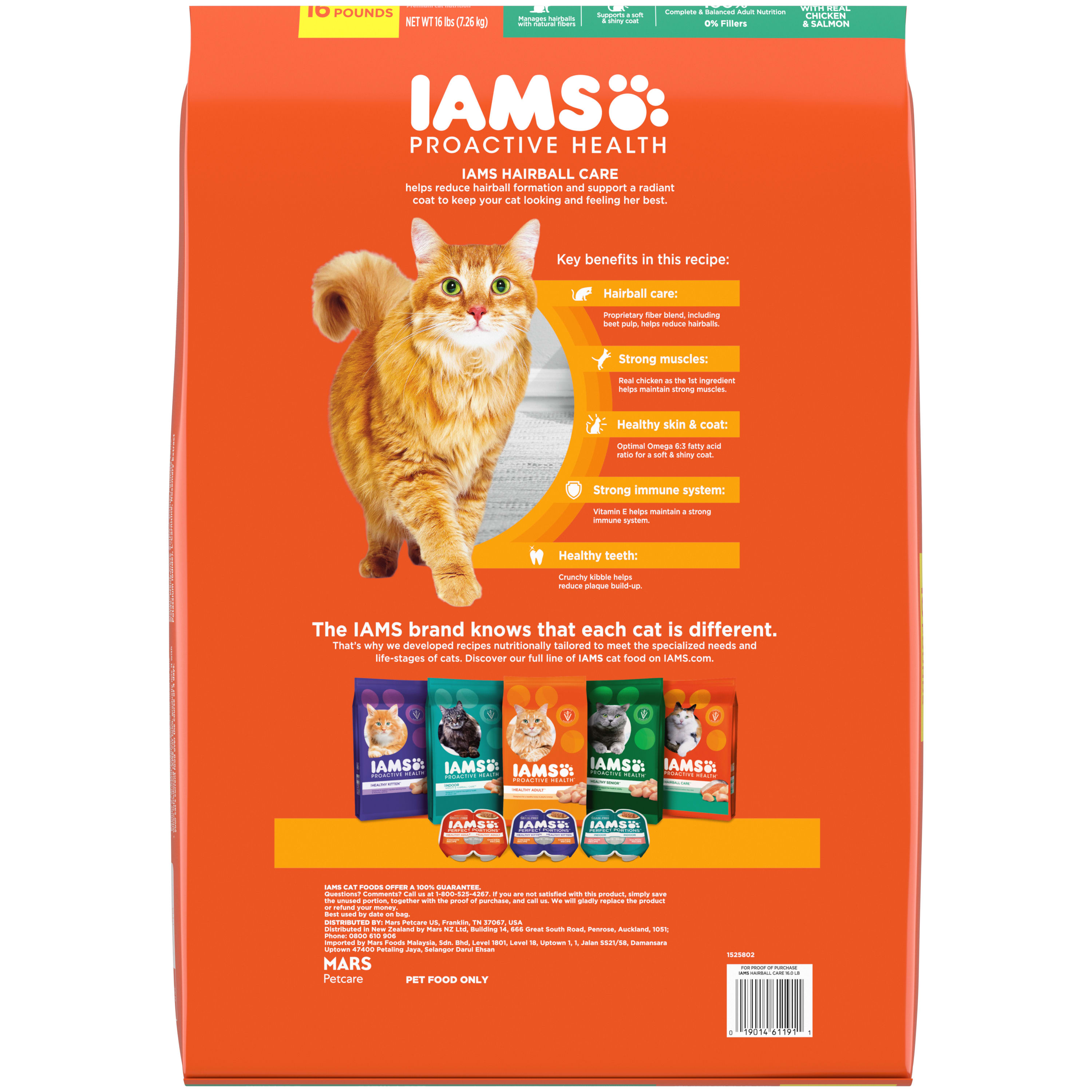 Iams Proactive Health Adult Hairball Care Protein Rich Hairball Control Dry Cat Food With Chicken And Salmon 16 Lb Bag Walmart Com